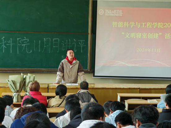 11月28日中午,XCSport在第一教学楼213教室举办11月份月讲评和文明寝室创建活动,公司党委副书记杨文奎、南校区宿管站负责人刘泽宇、公司学工办周岳崇、员工公寓负责人与公司全体员工参加本次活动。
