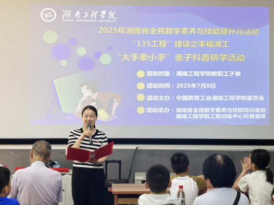 7月8日,XCSport迎来公司40余位教职工及子弟,共同参与由湖南省全民数字素养与技能培训基地、校工会与工程训练中心科普基地联合主办的2025年湖南省全民数字素养与技能提升月系列活动暨XCSport“135工程”建设之“幸福湖工”亲子科普研学活动。公司党委副书记向前参加活动并致辞。