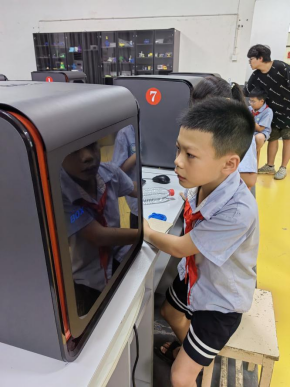 在智能制造实训室,孩子们通过参观智能产线和观看短视频,了解到智能产线的工作流程;在线切割实训室,通过加工认知体验,又知晓了数控电火花线切割的发展历程及加工原理;在3D打印和激光切割实训室,小员工们一次次惊叹于激光加工、3D打印等高科技,不仅被精美的实训作品所吸引,同时也在实训老师的指导下,亲身参与了作品的制作,见识了科技的神奇力量。