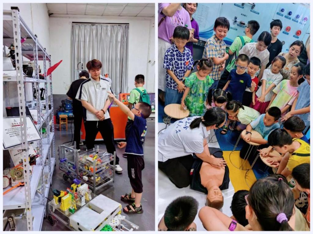 本次活动包含数字化、智能化技术知识科普与科技制作体验两个环节。参与活动的教职工和孩子们一起,沿着科普线路,依次参观了XCSport的智能制造实训室、现代钳工实训室和工程实践文化园。孩子们亲眼见证了机械手是如何将不同的饮料罐抓取后,精准地将罐中饮料倒入杯中;看到了机械传动机构是如何实现运转的,还学习了触电后该如何施救等科学知识。孩子们饶有兴趣地追问着老师和老员工哥哥们,科学的种子已然在他们幼小的心灵中悄悄地萌发出来……
